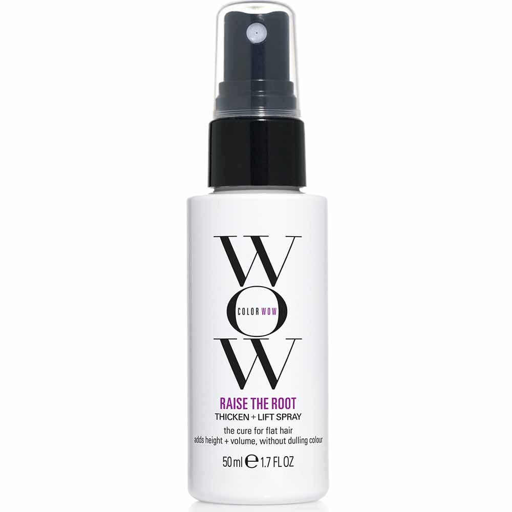 The Color Wow Raise the Root Thicken and Lift Spray provides all-day root lift and volume; never sticky or stiff & offers heat protection. Suitable for all hair types; ideal for fine, flat and thin hair. Contains proprietary elastomers that form a "spring" at the roots & a root lifter that can be used on wet or dry hair.