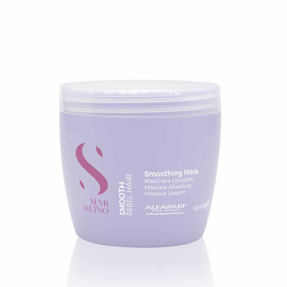 Semi Di Lino Smooth - rebel hair. Smoothing Mask is an intensive detangling treatment that controls and protects from frizz, for soft and hydrated hair. Vegan formula.